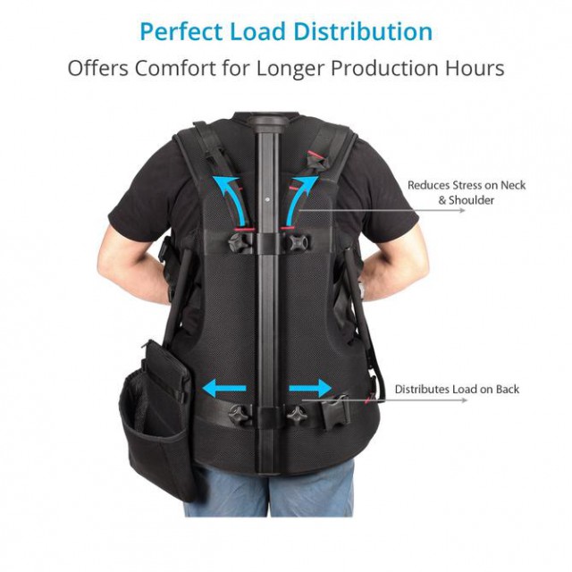Chápeme, že rozšírená práca s ručnou kamerou sa môže ukázať ako prekážka. Flycam Flowline odľahčuje ramená a ruky a pomocou pohodlného a priedušného postroja na telo ich rozkladá na celý chrbát.
