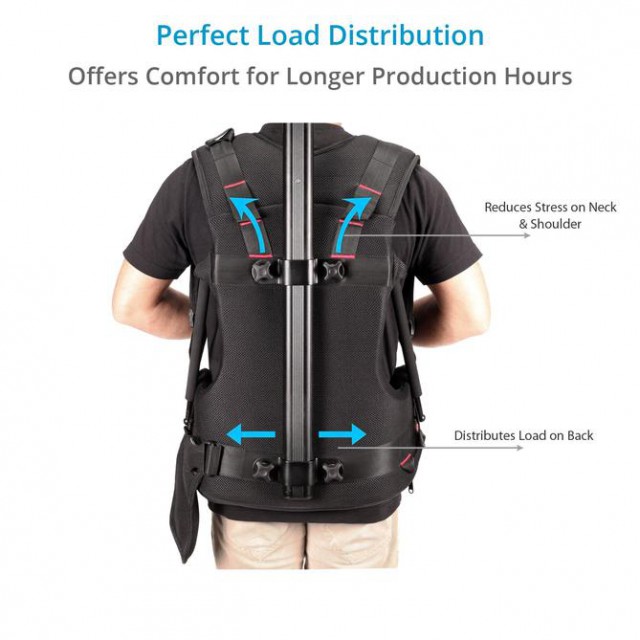 Profesionálna ergonomická vesta na podporu kamery Flowline 300N od spoločnosti FLYCAM je systém nosenia vesty na tele, ktorý je nastaviteľný na podporu kamerových súprav s hmotnosťou od 11 do 17,6 kg. Systém funguje tak, že pomocou závesného lanka podporuje hmotnosť gimbalovej súpravy, čím odbremeňuje vaše ramená, krk a svaly rúk a rozkladá ich na celý trup.