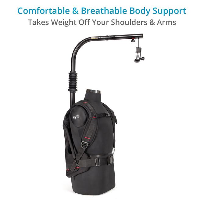 Chápeme, že dlhšia práca s kamerou z ruky môže byť náročná na chrbát. Kamera Flycam Flowline odľahčuje vaše ramená a ruky a pomocou pohodlného a priedušného postroja na telo ju prerozdeľuje na celý chrbát.