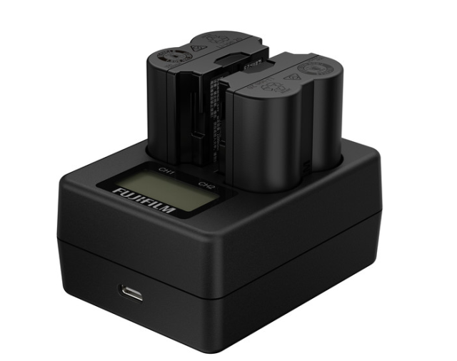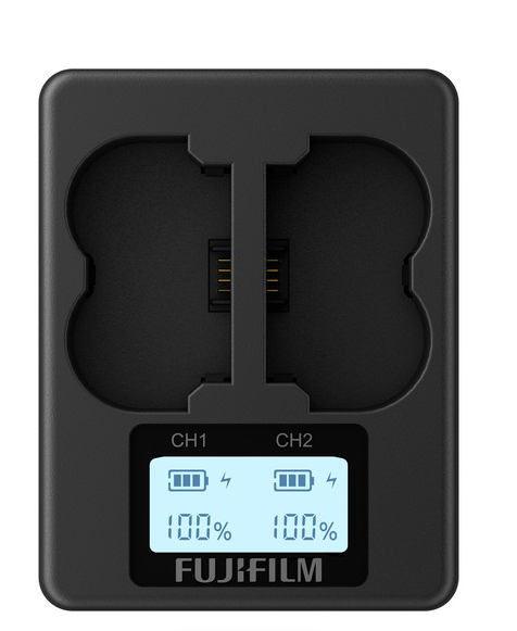 Dvojitá nabíjačka batérií Fujifilm BC-W235 efektívne nabíja dve batérie NP-W235 súčasne. Vďaka podsvietenému displeju, ktorý zobrazuje stav nabíjania každej batérie, táto nabíjačka zabezpečuje pohodlné a rýchle riadenie napájania batérií fotoaparátov Fujifilm.