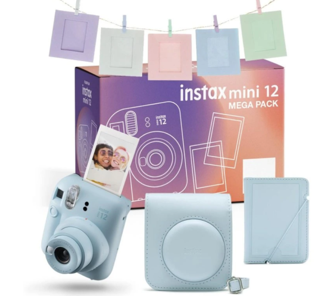 Fujifilm Instax Mini 12 Mega Pack Pastel Blue + príslušenstvo ponúka všetko, čo potrebujete na zachytávanie a zobrazovanie vašich okamžitých spomienok. Instax Mini 12 aktualizuje klasický dizajn Instax Mini s hravým zaobleným tvarom inšpirovaným mydlovými bublinami v pastelovo modrej farbe, vďaka čomu je štýlový a zábavný na používanie.