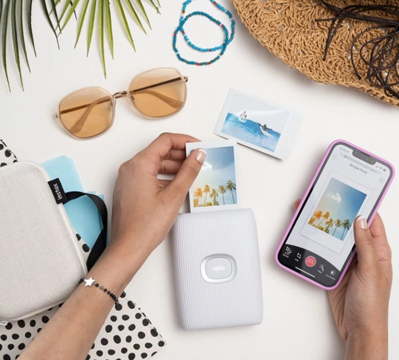 Fujifilm INSTAX Mini Link 2 Clay White je kompaktná a prenosná tlačiareň, ktorá oživí fotografie z vášho smartfónu vo formáte Instax Mini (86 × 54 mm). Vďaka pripojeniu Bluetooth, editácii prostredníctvom aplikácie a inovatívnej funkcii kreslenia instaxAiR™ AR môžete ľahko tlačiť zdobené fotografie, koláže a dokonca vytvárať interaktívne zážitky priamo z vášho telefónu alebo kompatibilných fotoaparátov Fujifilm.