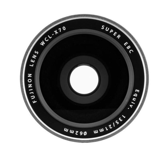 Širokouhlý objektív Fujifilm WCL-X70 (strieborný) je špeciálny konverzný objektív pre digitálny fotoaparát X70. Rozširuje pôvodný objektív na ohniskovú vzdialenosť zodpovedajúcu 21 mm (zväčšenie 0,8x) bez zníženia kvality obrazu alebo výkonu automatického zaostrovania.