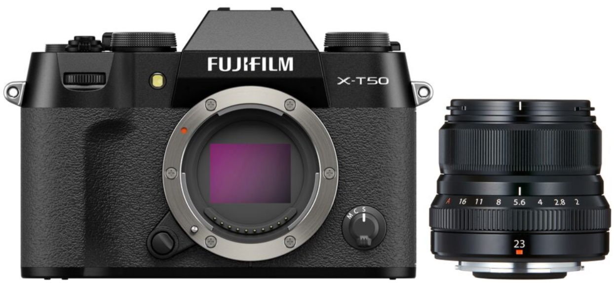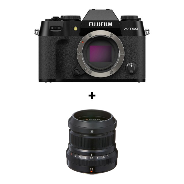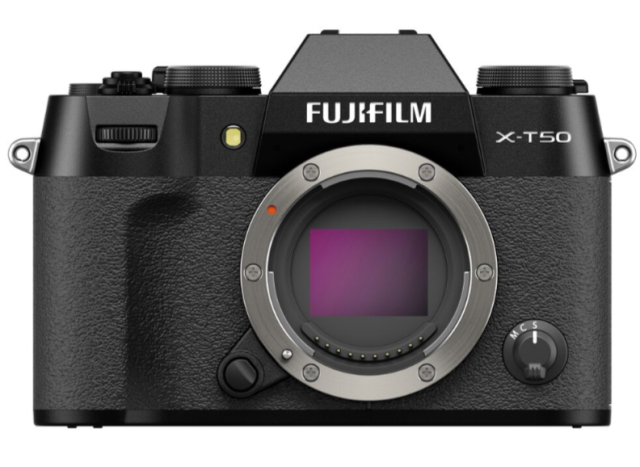 Fujifilm X-T50 Black je kompaktný bezzrkadlový fotoaparát APS-C s 40,2 MP snímačom X-Trans CMOS 5 HR, procesorom X-Processor 5, videom 6,2K/30p s otvorenou bránou, špeciálnym otočným voličom simulácie filmu s 20 režimami (vrátane REALA ACE), Automatické zaostrovanie s detekciou objektov pomocou umelej inteligencie (425 bodov, -7 EV), elektronická uzávierka až 1/180 000 s, 7-stupňová 5-osová stabilizácia obrazu IBIS, 2,36 M-bodový EVF, 3" 1,84 M-bodový dotykový displej s variabilným uhlom a hmotnosť 438 g s batériou – ideálny pre fotografie a videá s vysokým rozlíšením v retro štýle.