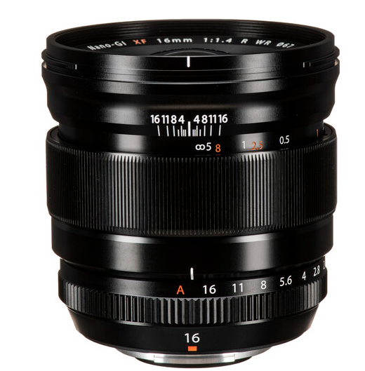 Fujifilm XF 16 mm f/1,4 R WR je rýchly širokouhlý objektív s pevným ohniskom určený pre bezzrkadlové fotoaparáty Fujifilm X-mount s formátom APS-C. Ponúka ohniskovú vzdialenosť zodpovedajúcu 24 mm, maximálnu clonu f/1,4 a konštrukciu odolnú voči poveternostným vplyvom. Zaisťuje výnimočnú ostrosť, vernosť farieb a výkon pri slabom osvetlení, vďaka čomu je ideálny na fotografovanie krajiny, ulíc a portrétov v prostredí.