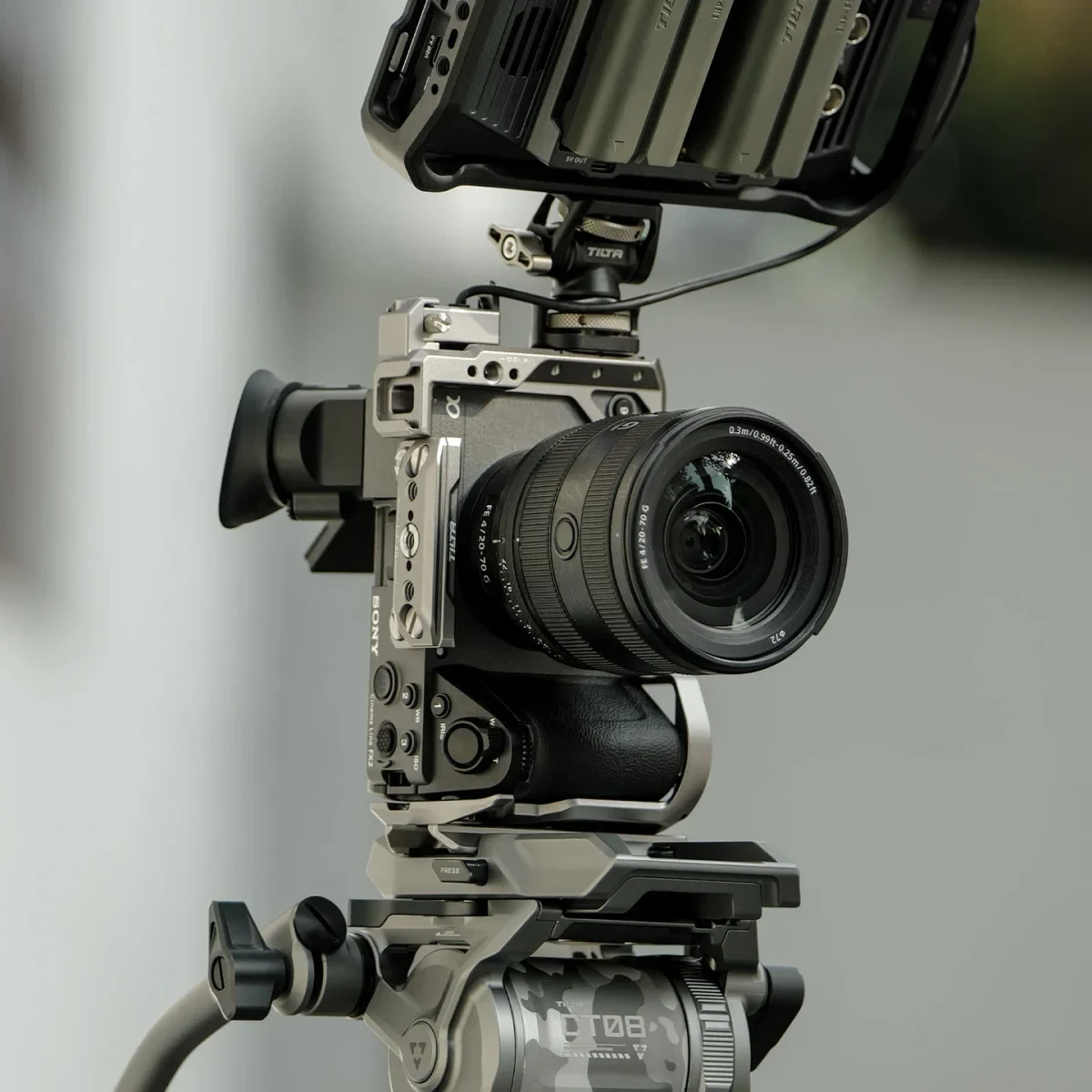 Do hornej časti klietky je integrovaná lišta NATO a studená pätica na montáž rôzneho príslušenstva, ako sú mikrofóny, LED svetlá alebo externé monitory. K dispozícii je tiež viacero závitov 1/4"-20 a 3/8"-16 s polohovacími bodmi, ktoré umožňujú bezpečné pripevnenie ďalších prvkov, ako sú rukoväte, hlavy statívov alebo káblové svorky.