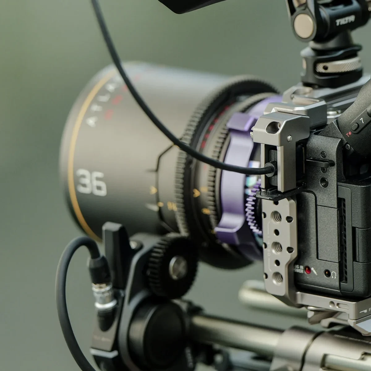 Klietka obsahuje dve káblové svorky so skrutkovou hlavou, ktoré zabezpečujú bezpečné upevnenie káblov HDMI a USB-C. Tým sa minimalizuje riziko poškodenia konektorov počas natáčania a zabezpečuje sa bezpečná prevádzka aj pri pohybe kamery.