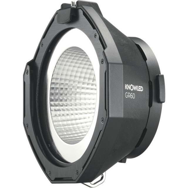 Reflektor Godox Knowled GR60 60° je navrhnutý tak, aby zlepšil výkon osvetľovacích systémov MG1200BI, MG2400BI, MG1200R a MG2400R tým, že ponúka presné tvarovanie lúča s minimálnym rozptylom. Jeho široký rozptyl svetla 60° je ideálny na rovnomerné osvetlenie veľkých scén, architektonických priestorov alebo skupín objektov pri zachovaní smeru a jasnosti. Reflektor GR60 je vyrobený s vysoko odrazivým strieborným vnútrom, čo zaručuje efektívny svetelný výkon a prirodzený pokles intenzity. Robustný otočný zámok umožňuje rýchle a bezpečné pripevnenie k kompatibilným svietidlám, čo z neho robí spoľahlivý nástroj pre profesionálnu filmovú, televíznu a komerčnú produkciu. Reflektor je navrhnutý výhradne ako príslušenstvo na tvarovanie lúča a nepodporuje pripevnenie mriežok, čím zaručuje jednoduché, ale efektívne riešenie na ovládanie svetla.