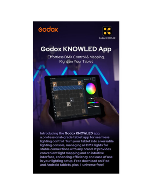 | Ovládanie svetla | DMX-512 + RDM, LumenRadio CRMX, Bluetooth (Godox Light app), 2.4 GHz remote, on-unit control |