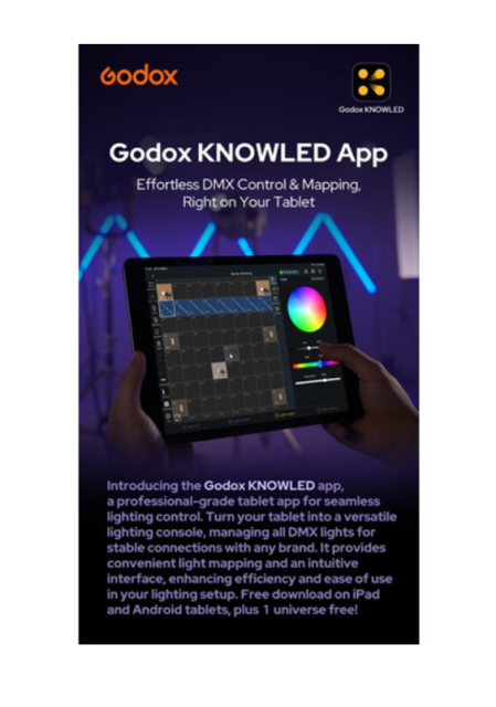 | Ovládanie svetla | On-body control, DMX‑512 / RDM, CRMX (LumenRadio), Bluetooth (Godox Light app), Art‑Net & sACN |