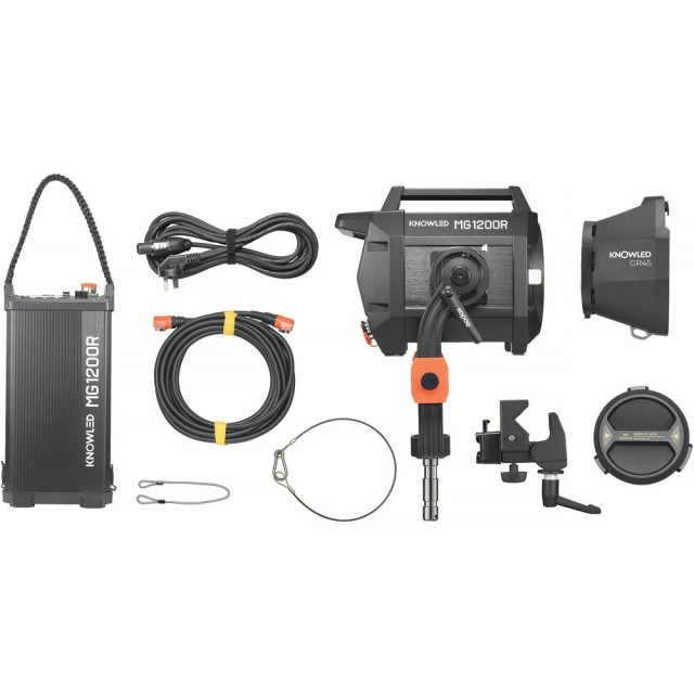 Godox Knowled MG1200R je výkonný 1600 W plnofarebný RGB LED monosvetlo navrhnuté pre high-end filmovú, televíznu a komerčnú produkciu. Ponúka masívnych 21 300 luxov na 3 metre s priloženým 45° reflektorom, ultraširokým CCT 1800–10 000 K, pokročilými farebnými režimami RGB, odolným puzdrom IP65 a viacerými možnosťami ovládania, vrátane DMX, CRMX, Art-Net, sACN a ovládanie cez aplikáciu. MG1200R poskytuje výnimočnú farebnú presnosť, spoľahlivosť a kreatívnu flexibilitu pre profesionálne osvetľovacie prostredia.