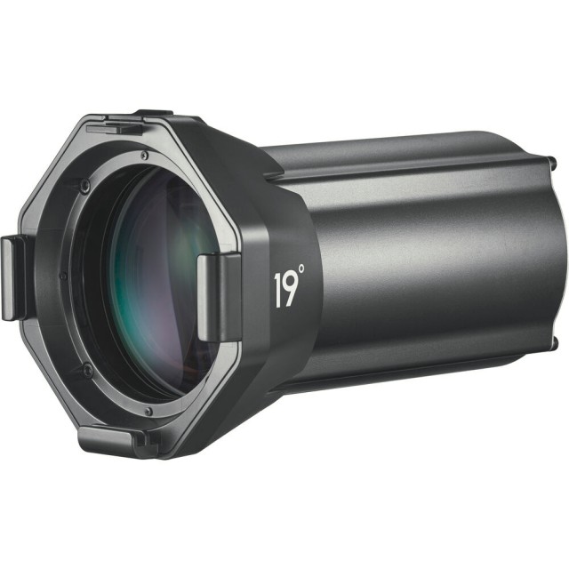 Výmenný objektív Godox Knowled 19° pre príslušenstvo Spotlight tvaruje svetlo do presného lúča s uhlom 19°. Dá sa ľahko vymeniť za iné objektívy a poskytuje univerzálne ovládanie osvetlenia pre filmové a štúdiové nastavenia.