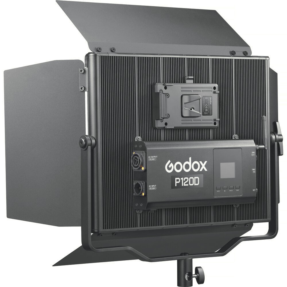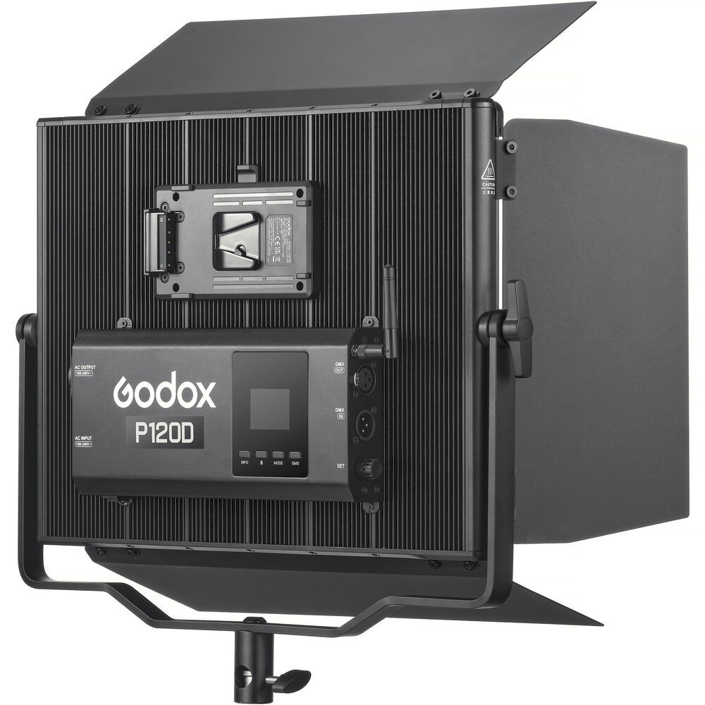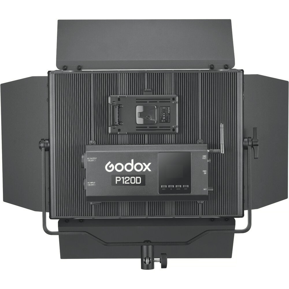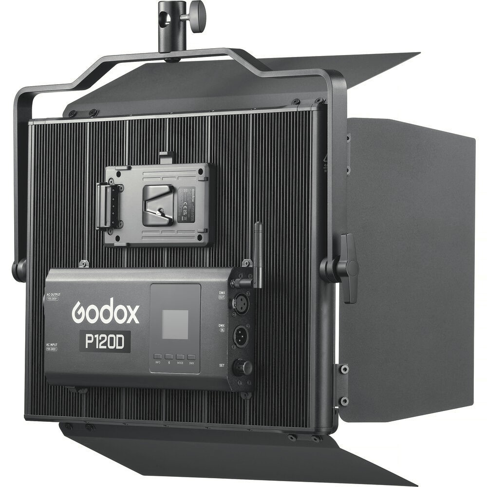 P120D je navrhnutý pre prácu v štúdiu aj v exteriéri, ponúka vstup/výstup striedavého prúdu pre čisté nastavenia a je vybavený vstavanou batériovou doskou V-mount pre prenosnú prevádzku bez káblov. Kľúčovou výhodou je možnosť zapojiť do série až päť panelov, čo zjednodušuje konfigurácie s viacerými svetlami. Ovládanie je rovnako univerzálne – jas je možné nastaviť v rozmedzí 0–100 % pomocou integrovaných ovládacích prvkov, DMX512 alebo bezdrôtovo pomocou aplikácie Godox Light App cez Bluetooth. Bezventilátorová konštrukcia chladenia zaisťuje tichú prevádzku počas natáčania. Panel obsahuje štvorcestné clony na tvarovanie lúča a jeho rozmery 18 x 16" s držiakom a 5/8" prijímačom sa ľahko integrujú do profesionálnych zariadení. Či už v štúdiu, na pľaci alebo vonku, P120D poskytuje spoľahlivý výkon tam, kde je potrebné konzistentné, vysoko kvalitné denné osvetlenie.