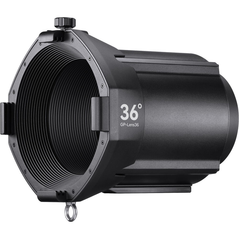 Objektív Godox Knowled GP36K 36° je profesionálny projekčný objektív navrhnutý pre systém Godox G-Mount. Tento pevný objektív s uhlom 36° poskytuje rovnomerný, kontrolovaný lúč s ostrými okrajmi, zvýšenou jasnosťou a minimálnym optickým skreslením, vďaka čomu je ideálny pre projekciu gobo, osvetlenie reflektorom a iné presné osvetľovacie aplikácie vo fotografii, filme a divadelných produkciách. V kombinácii s LED monosvetlom MG1200Bi môže GP36K zosilniť svetelný výkon až osemnásobne, čím poskytuje vysoko intenzívne osvetlenie pre náročné projekty. Puzdro objektívu je navrhnuté pre rýchlu a bezpečnú inštaláciu a demontáž z G-Mount, čo zaručuje univerzálne a efektívne použitie na pľaci. Objektív GP36K 36° je vhodný pre kameramanov, fotografov a osvetľovačov a rozširuje kreatívne možnosti osvetlenia s jasnosťou, presnosťou a vynikajúcou svietivosťou.