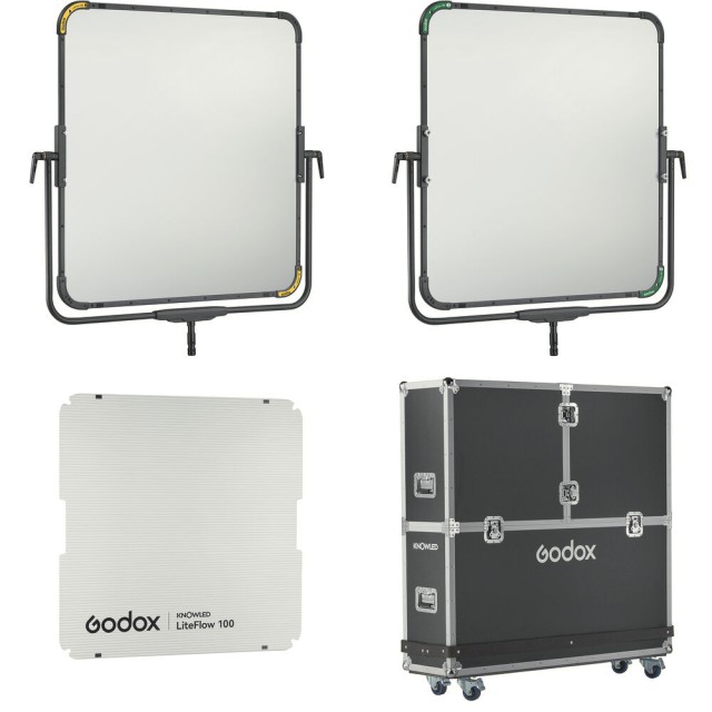 Súprava Godox Knowled LiteFlow 100 K1 je profesionálny obojstranný reflektorový systém s dvoma hliníkovými reflektormi s rozmermi 40 × 40" (100 × 100 cm) s rôznymi typmi difúzie. Je uložený v robustnom kufri a ponúka univerzálne filmové osvetľovacie riešenia pre fotografovanie a filmovanie.