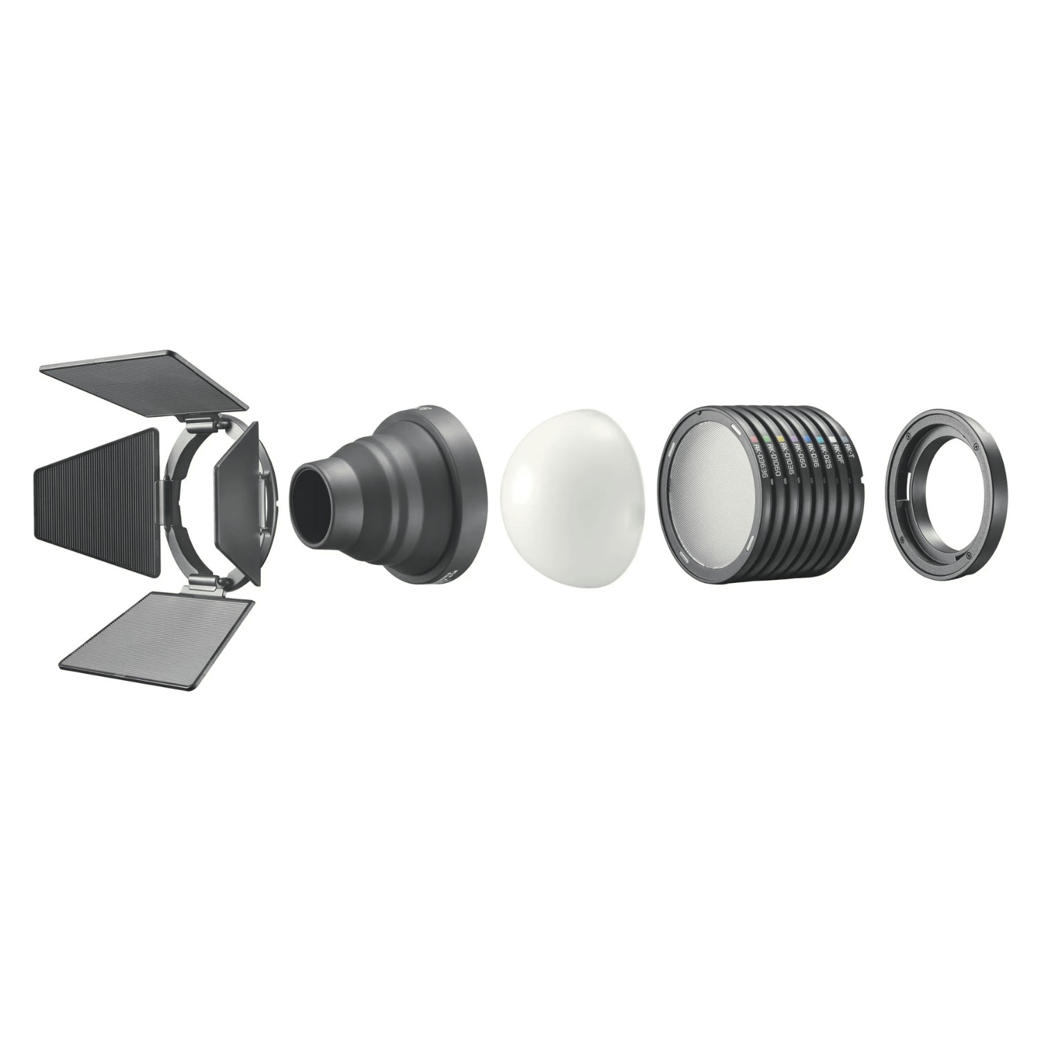 Súprava Godox Knowled Magnet Kit MK ponúka univerzálnu sadu magnetických modifikátorov pre LED filmové svietidlá MS60Bi a MS60R, vrátane barn doors, snootu, kopulovitého difúzora a mikrooptiky, ktoré umožňujú kameramanom presne tvarovať a ovládať svetlo.