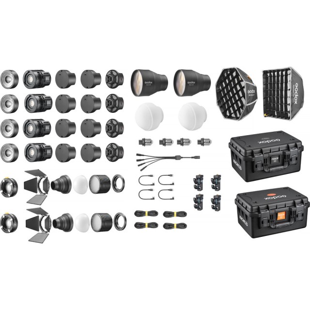 Súprava Godox Knowled MS60BI 4-Light Kit (MS60BI 4K) kombinuje prenosnosť, výkon a univerzálnosť v kompletnom riešení dvojfarebného LED osvetlenia. Každé 60 W svetlo MS60BI poskytuje 17 400 luxov pri 3,3' (5600 K) a pokrýva celý rozsah farebnej teploty 2800–6500 K, čím poskytuje presné osvetlenie od denného svetla po tungstenové s CRI 97 a TLCI 98. Súprava je ideálna pre film, televízne vysielanie, fotografovanie a živé podujatia a obsahuje dva zosilňovače lúča DL5 Lite, dve skladacie difúzne kopule, softboxy, šošovky, barndoors a snooty, ktoré umožňujú presné tvarovanie svetla.