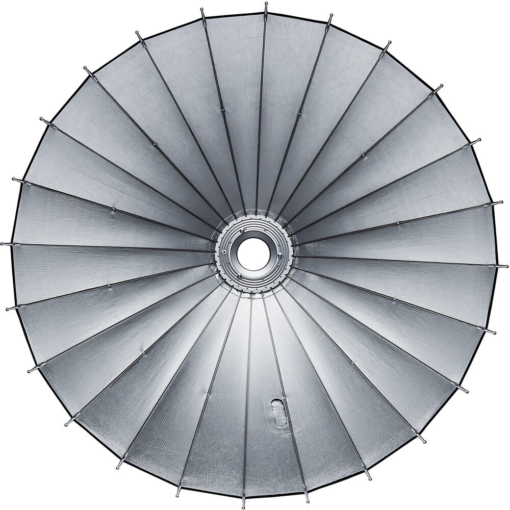 Jeho 47,2" (120 cm) strieborný vnútorný reflektor zaisťuje maximálnu účinnosť svetla a ostré odlesky, zatiaľ čo čierny vonkajšok zabraňuje nežiaducemu rozptylu svetla. PF-M zaostrovací držiak a PF-R870 zaostrovacia tyč vám umožňujú jemné doladenie polohy zdroja svetla v reflektore, čím získate plnú kontrolu nad jemnosťou a intenzitou svetla.