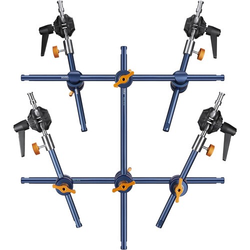 Súprava Godox Knowled Reflector Array Grip Kit GK25, vyvinutá pre profesionálne osvetľovacie zostavy, umožňuje fotografom a kameramanom jednoducho namontovať a nastaviť viacero reflektorov LiteFlow. Súprava obsahuje tri predlžovacie tyče s dĺžkou 19,6" a štyri menšie tyče, ktoré poskytujú flexibilné možnosti umiestnenia. Sada ramen s guľovými kĺbmi s jedným alebo dvoma gombíkmi zaisťuje plynulé a presné nastavenie, zatiaľ čo štyri svorky s račňovými rukoväťami bezpečne držia reflektory na mieste. Tento špecializovaný montážny systém, kompatibilný s reflektormi Godox LiteFlow, zvyšuje efektivitu pracovného postupu a kreatívne ovládanie osvetlenia. Či už ide o fotografovanie v štúdiu alebo na mieste, GK25 je spoľahlivé riešenie pre komplexné usporiadanie reflektorov.