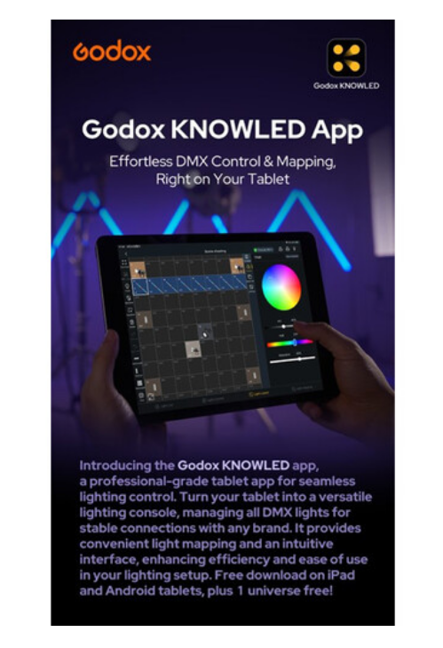 | Ovládanie svetla | DMX, Bluetooth,Godox Light app. |