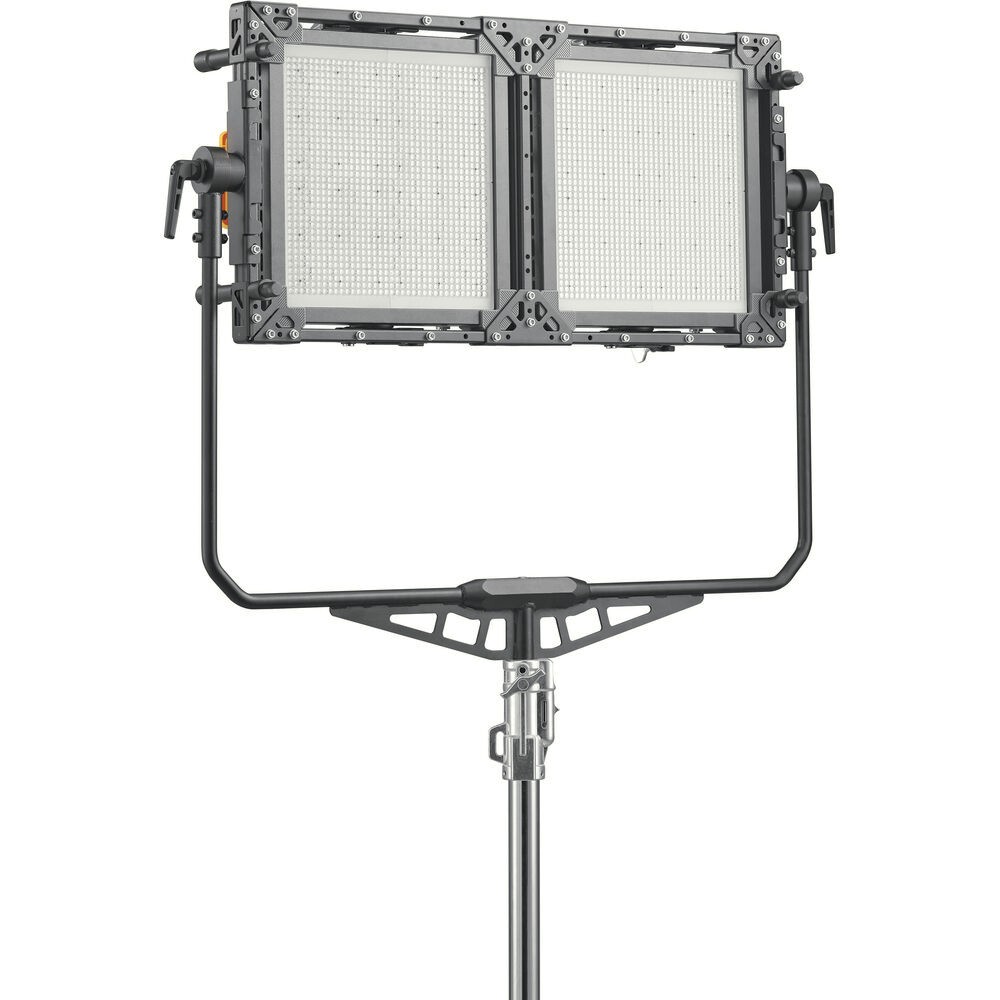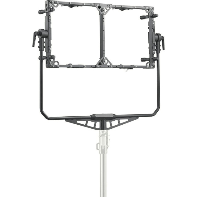 Godox Knowled AB-02 Two-Light Bracket je odolné, priestorovo úsporné montážne riešenie určené na uchytenie dvoch LED svetelných panelov Godox P300R alebo P600Bi v jednom robustnom ráme. Je ideálny pre filmárov a profesionálov v oblasti osvetlenia, maximalizuje výkon kombináciou viacerých panelov a zároveň udržuje čistotu a efektívnosť nastavení na pľaci.