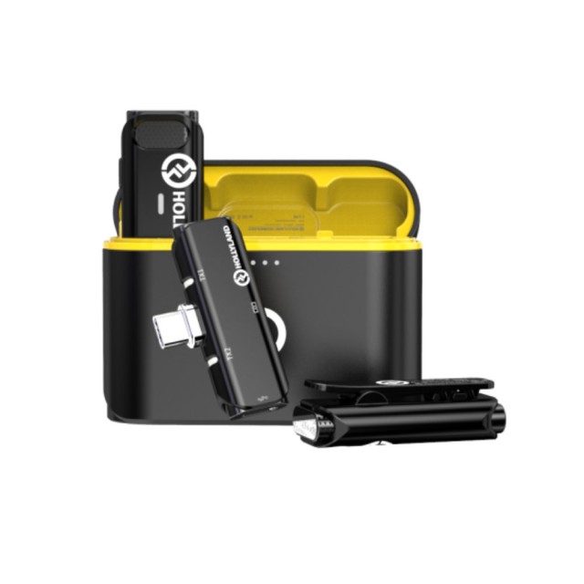 Pomocou čierneho bezdrôtového mikrofónového systému LARK C1 DUO od spoločnosti Hollyland môžete nahrávať až dve osoby pre mobilnú žurnalistiku alebo aplikácie na tvorbu obsahu do svojho mobilného zariadenia s rozhraním USB-C. Systém obsahuje dva vysielače so zabudovanými všesmerovými mikrofónmi a jeden dvojkanálový prijímač - to všetko s kompaktnými rozmermi. Klipy na zadnej strane každého vysielača umožňujú pripevniť ich na klopu košele, zatiaľ čo pripojiteľný prijímač sa pripája priamo k portu USB-C na smartfóne alebo tablete, ktorý ho zároveň napája.
