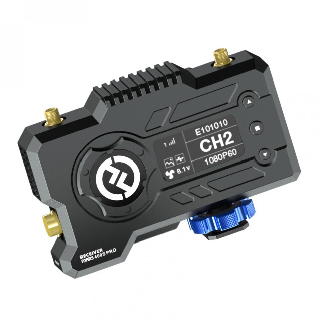 Prijímač pre bezdrôtový systém Mars 400S Pro. Vylepšená verzia obľúbeného systému bezdrôtového prenosu videa Mars 400S ponúka nový dizajn, nižšiu latenciu (0,08 sekundy), voliteľné režimy aktívneho chladenia (Off, Low Speed a Auto), vyšší dátový tok až 12 Mb/s oproti pôvodným 8 Mb/s) a možnosť napájania cez USB-C (5 V/2 A). V predaji od 10/2020. Len pre prijímateľa