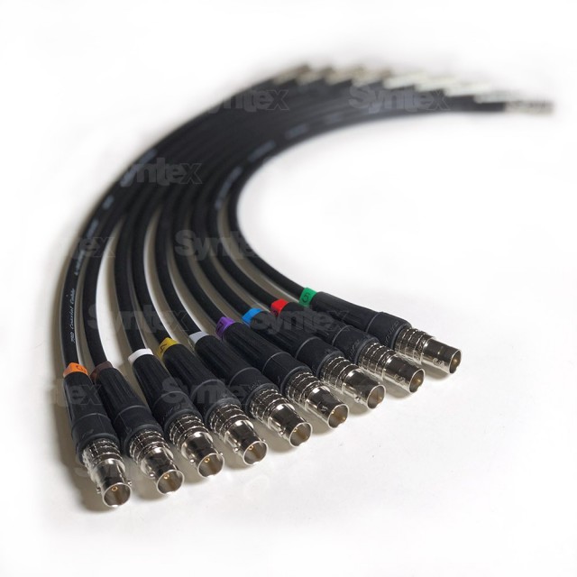 Sada káblov je vyhotovená z kvalitného, flexibilného koaxiálneho kábla, DIN 1.0/2.3 a BNC (samica) konektorov od Japonského výrobcu Canare.