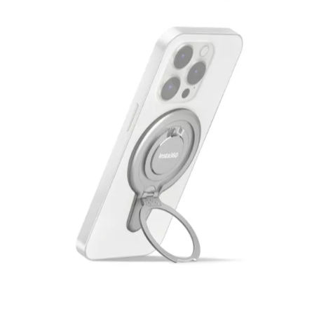 Magnetický držiak na telefón Insta360 Flow 2 Pro (INST904-03) je príslušenstvo kompatibilné s MagSafe, určené pre iPhone 12 a novšie modely. Je vybavený silnými magnetmi N52 a otočným kovovým krúžkom o 360°, ktorý bezpečne drží telefón, slúži ako stojan a chráni vaše zariadenie mäkkým silikónom, čím ponúka rýchle a plynulé natáčanie ako alternatívu k štandardnej magnetickej svorkovnici.