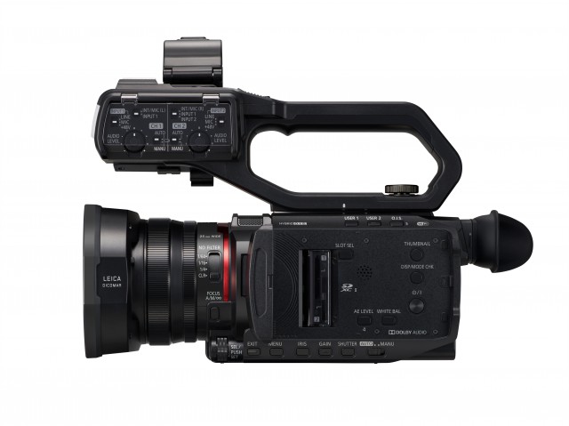 Integrovaný objektív ponúka 24-násobný optický zoom od 25 do 600 mm (ekvivalent 35 mm). i.ZOOM dosahuje 32-násobný zoom pri rozlíšení 4K a 48-násobný pri rozlíšení FHD. Objektív je vybavený štyrmi motormi, z ktorých každý samostatne poháňa štyri skupiny šošoviek; v kompaktnom tele tak možno dosiahnuť 24-násobný optický zoom. Vďaka objektívu LEICA Dicomar, ktorý spĺňa prísne kritériá kvality spoločnosti Leica Camera AG, pokiaľ ide o rozlíšenie, kontrast atď., možno dosiahnuť úžasný obraz, v ktorom sú potlačené odlesky a iné optické chyby. K dispozícii sú dva manuálne krúžky, jeden na zaostrovanie a druhý na ovládanie zoomu alebo clony. Ručné krúžky majú každý inú veľkosť, aby sa dali rozlíšiť prstami a nezamotali sa. Na výber sú filtre 1/4, 1/16, 1/64 a Clear ND.
