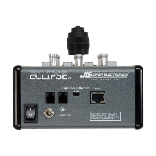 Ovládač Eclipse PX Surround Panning Joystick Controller od spoločnosti JLCooper kombinuje vysokokvalitný 3-osový joystick s 5 dotykovými, tlačidlovými, otočnými snímačmi, 9 podsvietenými tlačidlami a 3-miestnym bielym LED displejom na zobrazenie čísla skladby.