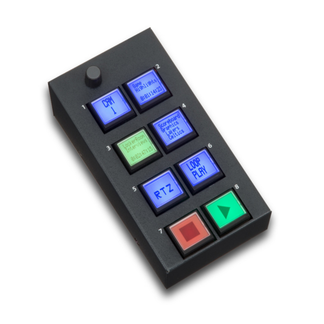 JLCooper SharpShot - ultrakompaktná príkazová paleta ponúka ovládanie pracovnej plochy prostredníctvom 8 diaľkovo ovládaných 64 x 32 LCD klávesových spínačov. Vďaka nízkej hmotnosti (1,25 lb / 0,56 kg) a kompaktným rozmerom (3 x 6,25 x 2") je vhodný na použitie v automatizácii a priemyselných riadiacich systémoch. Pomocou zabudovaného sériového rozhrania riadeného príkazmi môže ovládač zobrazovať text (až 40 znakov) a grafiku.