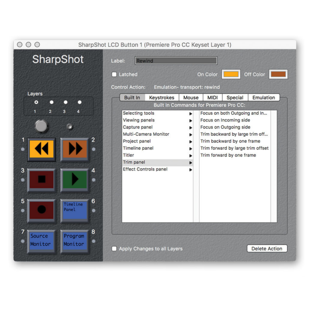 Príkazová paleta SharpShot, ktorá integruje grafický LCD displej s podsvietením RGB, dokáže zobraziť až 64 farieb a dodáva sa so softvérovým ovládaním rozhrania, displeja a podsvietenia. Ovládač, ktorý ponúka okamžité prehrávanie a ovládanie zvuku alebo videa, je vhodný na automatizáciu vysielania, postprodukciu a iné špecializované aplikácie. Ovládač vás tiež upozorňuje na zmenu prevádzkových podmienok prostredníctvom zobrazenia ľubovoľných 8 rôznych farieb. Vďaka prispôsobenému používateľskému rozhraniu ponúka ovládač SharpShot flexibilné ovládanie a rýchlu obsluhu, pričom znižuje počet ľudských chýb.