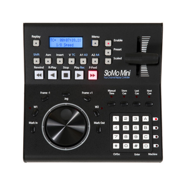 JLCooper SloMo Mini je riadiaca jednotka pre okamžité prehrávanie, ktorá je určená pre spravodajstvo, šport, výsledkové tabule a iné scenáre spomaleného strihu a je schopná prepojiť sa až so štyrmi VTR dekami súčasne prostredníctvom pripojenia RS-422. Pomocou programovateľného kolieska jog alebo numerickej klávesnice možno v reálnom čase navoliť konkrétne zábery a potom s nimi manipulovať pomocou T-baru. Pomocou dodaného 4-cestného rozbočovacieho/napájacieho kábla je SloMo Mini kompatibilný s mnohými štandardnými VTR deckmi a servermi, ktoré podporujú riadiaci protokol RS-422, vrátane AJA KiPro, Blackmagic Design HyperDeck Studio a VideoDevices PIX 250i, 260i a 270i.