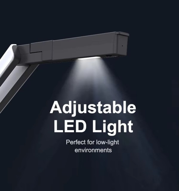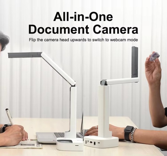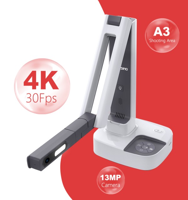 Dokumentová kamera Joyusing V513 4K 2 v 1 ponúka 13,0MP snímač CMOS s rozlíšením 4K, 100-násobný digitálny zoom a automatické zaostrovanie. Vyznačuje sa ostrým snímaním obrazu, streamovaním v rozlíšení 4K bez oneskorenia a funguje s počítačom aj bez neho.