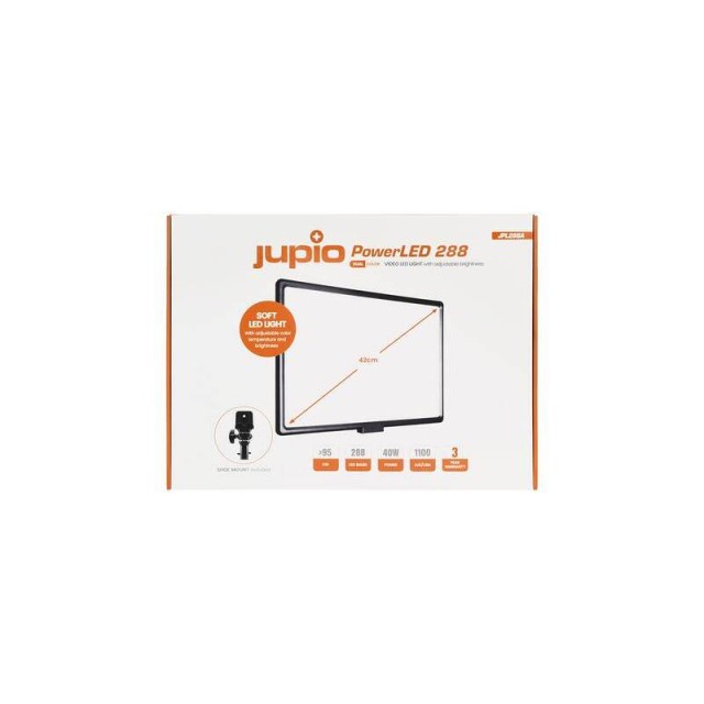 Jupio PowerLED 288A je veľké svetlo LED, ktoré vám môže prísť na pomoc pri fotografovaní alebo natáčaní videa. Môže sa pochváliť výnimočnou veľkosťou uhlopriečky 42 cm, čo znamená, že dokáže poskytnúť silný zdroj svetla a osvetliť scénu za akýchkoľvek svetelných podmienok. Veľké svetlo sa skladá z 288 žiaroviek LED, ktoré umožňujú jednoduché nastavenie teploty bielej farby aj jasu. Všeobecne platí, že teplé biele svetlo pomáha vytvárať pocit uvoľnenia, zatiaľ čo studený tón podporuje koncentráciu na prácu. Aktuálne nastavenia oboch hodnôt môžete zobraziť prostredníctvom prehľadného displeja LCD.