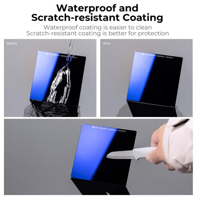 Štvorcový filter K&F Concept 100×100×2 mm Nano-X ND2000 poskytuje výkonné zníženie svetla o 11 stupňov pre fotografovanie s extrémne dlhou expozíciou, čo umožňuje krásne hladkú vodu, dramatický pohyb mrakov a kontrolu ultrajasného denného svetla. Je vyrobený z optického skla AGC s obojstrannou 28-vrstvovou nano vrstvou, ktorá redukuje odrazy, zvyšuje čistotu a poskytuje trvalú ochranu proti vode, oleju, škrabancom a plesni, čím zabezpečuje prvotriednu kvalitu obrazu v akomkoľvek prostredí.