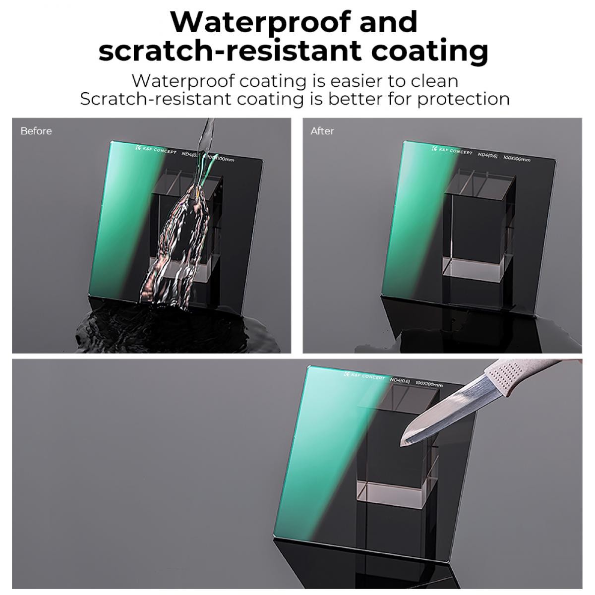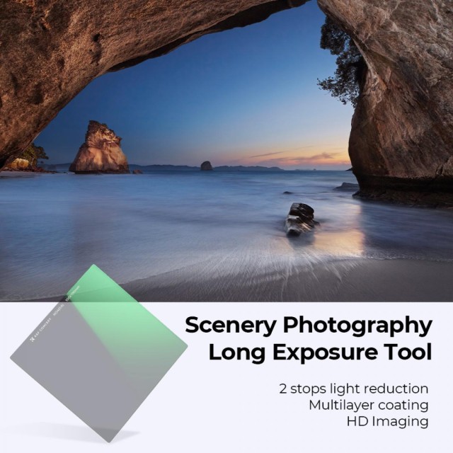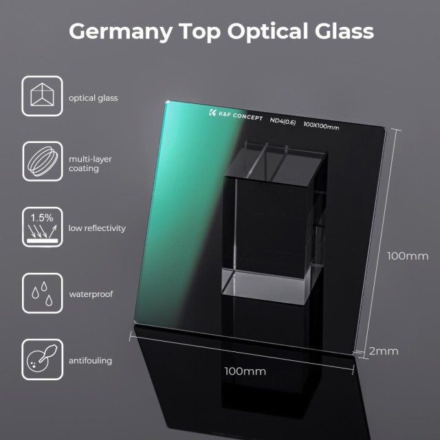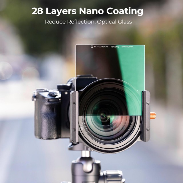 Filter K&F Concept 100×100×2 mm Nano-X Square Coated ND4 je presne vyrobený neutrálny filter určený pre fotografovanie s dlhou expozíciou a vysokým rozlíšením. Je vyrobený z prvotriedneho optického skla AGC s obojstrannou 28-vrstvovou nano vrstvou, ktorá redukuje odlesky a odrazy a zároveň zachováva ostrosť pri všetkých ohniskových vzdialenostiach. Jeho odolný, vodotesný, odolný proti poškriabaniu a oleju povrch zaisťuje spoľahlivý výkon v náročných podmienkach a priložené ochranné puzdro z kože a peny chráni filter počas prepravy.
