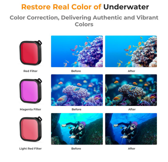 Vodotesná súprava K&F 21 v 1 je špeciálne navrhnutá pre kamery GoPro Hero 12, 11, 10 a 9 Black a poskytuje komplexnú ochranu a všestranné príslušenstvo pre podvodné dobrodružstvá. Táto súprava obsahuje vodotesné puzdro, ktoré podporuje hĺbku až do 147 stôp, sadu potápačských filtrov na korekciu farieb a plávajúcu rukoväť na lepšie ovládanie a prevenciu…