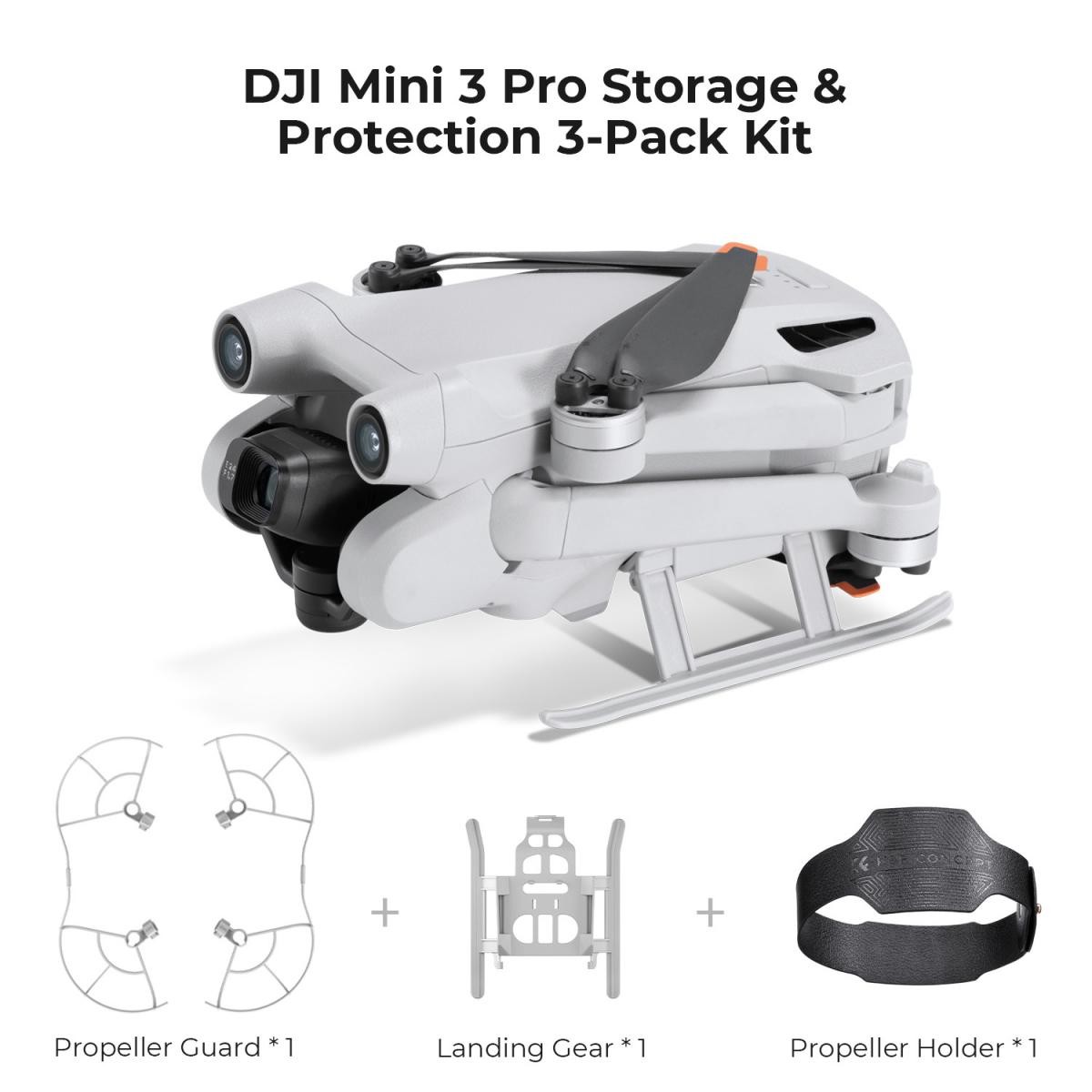 Súprava príslušenstva K&F 3 v 1 pre DJI Mini 3 Pro kombinuje zdvihnutý podvozok, protikolízne krúžky na vrtule a zhlukovač vrtúľ, ktoré zvyšujú bezpečnosť letu, chránia vrtule a zlepšujú výkon pri vzlete a pristátí – bez výrazného zvýšenia hmotnosti alebo ovplyvnenia stability letu.