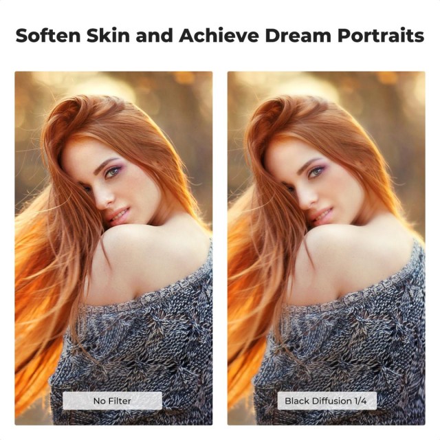 Filter Black Cine Diffusion je vyroben z precízneho optického skla AGC z Japonska, opatreného dvojitou viacnásobnou vrstvou pre zvýšenie priepustnosti svetla až na 84 %, účinne znižuje odrazy z hladkého povrchu a nevytvára vinetáciu ani tiene.
