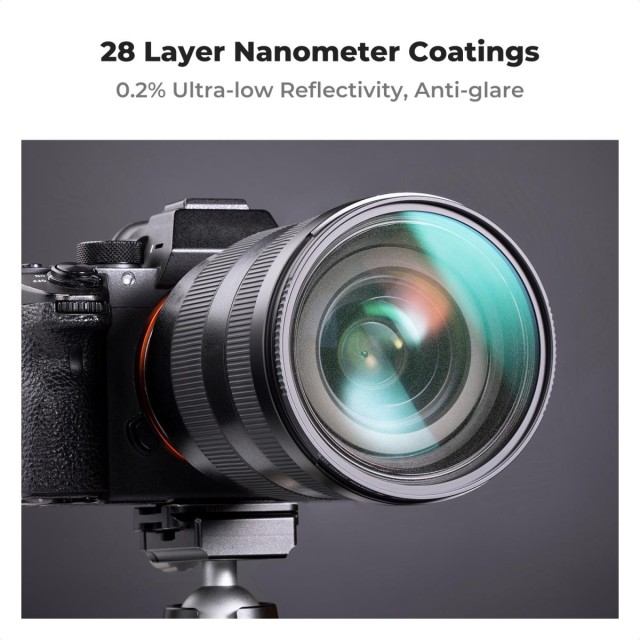 Po optickom brúsení je sklenený filter opatren high-tech vrstvou, ktorá je vodoodolná, odolná proti poškriabaniu a odpudzuje mastnotu. Má vysokú odolnosť proti poškodeniu bez vplyvu na kvalitu obrazu. Aj pri znečistení kvapkami vody alebo olejom sa filter dá ľahko vyčistiť.