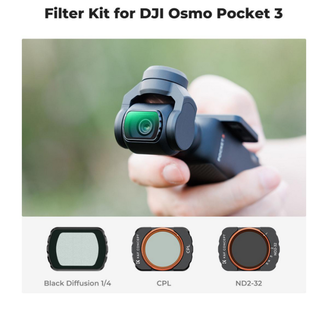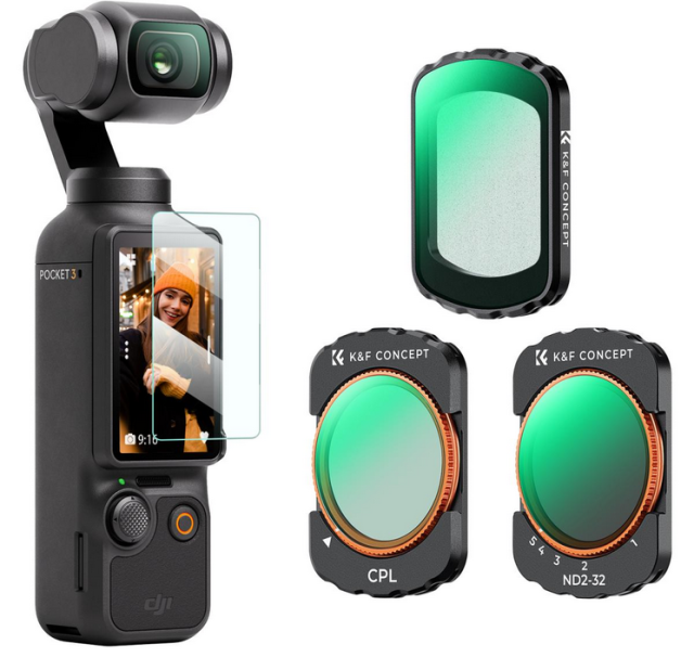 Súprava 3 ks filtrov K&F pre DJI Osmo Pocket 3 obsahuje CPL, ND2-32 a čierny difúzny 1/4 filter, ktoré sú vyrobené z najkvalitnejšieho dovážaného optického skla AGC s viacvrstvovými vrstvami. Tieto filtre sa vyznačujú hydrofóbnymi vlastnosťami, odpudzujú prach, sú odolné proti mastnote a proti poškriabaniu, čo zaručuje jednoduchú údržbu a trvanlivosť. Táto všestranná súprava filtrov pokryje vaše každodenné potreby pri fotografovaní a rozšíri váš zážitok z fotografovania s fotoaparátom Osmo Pocket 3.