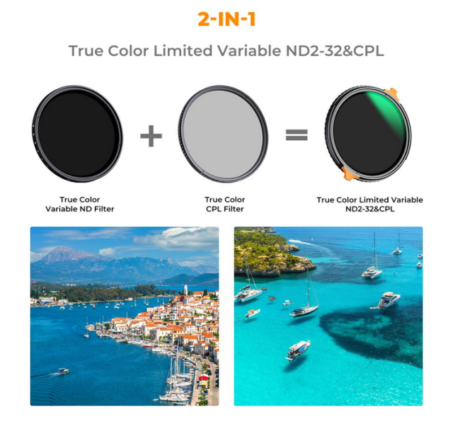 Multifunkčný filter K&F 49MM True Color ND2-32 + CPL kombinuje výhody filtrov s neutrálnou hustotou (ND) a kruhového polarizačného filtra (CPL) v jednom kuse, čo z neho robí základný nástroj na zlepšenie vašich fotografií. Tento všestranný filter je navrhnutý na kontrolu svetla, zníženie odrazov a zachovanie skutočnej kvality farieb na vašich snímkach a videozáznamoch.