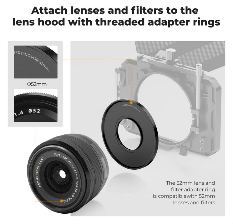 Adaptačný krúžok K&F 52MM Matte Box je odolné a ľahké riešenie vyrobené z hliníkovej zliatiny leteckej kvality. Vďaka presnému CNC spracovaniu zabezpečuje bezpečné uchytenie s matnými boxmi K&F Concept, poskytuje stabilnú oporu a zabraňuje úniku svetla, čím zvyšuje kvalitu snímania.