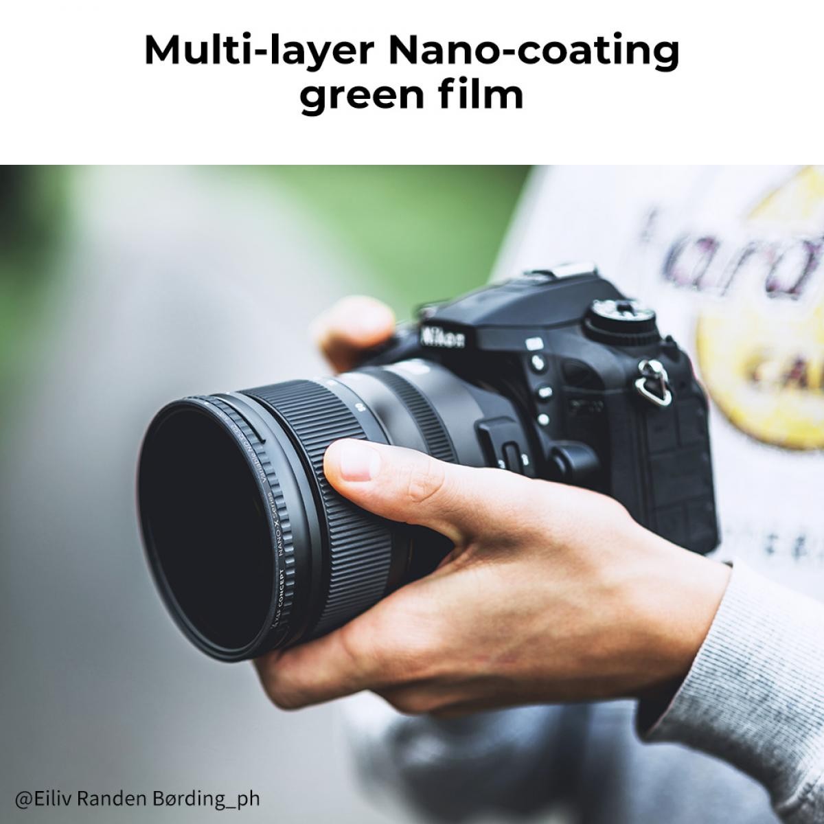 Variabilný ND filter K&F Concept 52 mm Nano-X (ND32–ND512) poskytuje plynulé zníženie svetla o 5 stupňov bez farebného nádechu alebo bežného krížového efektu „X“. Je vyrobený z prvotriedneho optického skla japonskej výroby a pokročilých povlakov Nano-X, takže je ideálny pre fotografovanie a natáčanie videa vonku, kde je nevyhnutná presná kontrola expozície.