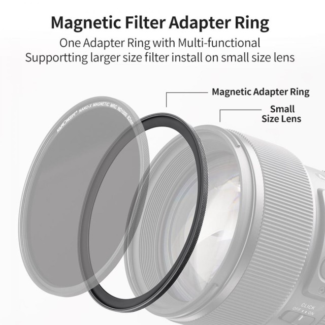 Pre fotografov, ktorí chcú rozšíriť svoju zostavu filtrov o magnetický systém K&F Concept, je magnetický filtračný adaptérový krúžok 55-77 mm praktickým riešením na rozšírenie kompatibility filtrov.