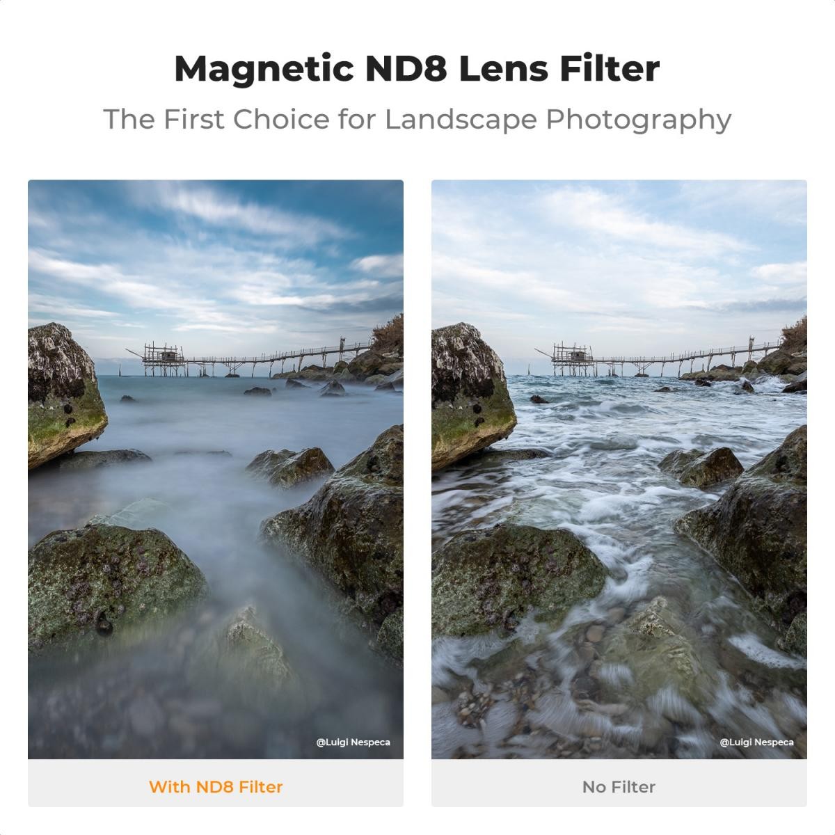 Zachyťte úžasné fotografie s magnetickým filtrom K&F 55 mm NANO-X-ND8, navrhnutým pre fotografov, ktorí hľadajú pohodlie a vynikajúcu kvalitu obrazu. S trojstupňovým stmievacím efektom ND8 umožňuje presné ovládanie expozície bez ovplyvnenia vernosti farieb. 16-vrstvová zelená nano-vrstva účinne redukuje odrazy, filtruje ultrafialové lúče a zvyšuje priepustnosť svetla pre vyvážené, verné farby. Filter je opticky leštený a potiahnutý high-tech ochrannou vrstvou, je vodotesný, odolný proti poškriabaniu, plesniam a oleju, čo zaručuje jeho dlhú životnosť. Jeho magnetický dizajn umožňuje inštaláciu a demontáž za jednu sekundu, zatiaľ čo kryt objektívu z hliníkovej zliatiny leteckej kvality ponúka možnosti magnetického aj závitového upevnenia. Balenie obsahuje magnetický filter ND8, upevňovací krúžok a magnetický kovový kryt pre maximálnu flexibilitu.