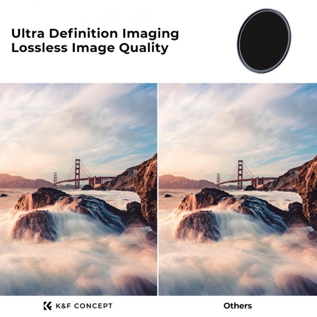 ND filter (filter s neutrálnou hustotou) slúži na zabránenie nadmernej expozícii pri fotografovaní v exteriéri, na kontrolu svetla vstupujúceho do objektívu aj pri nízkej rýchlosti uzávierky, aby sa zaznamenal pohyb rozmazaného objektu, a odporúča sa používať ho pri fotografovaní krajiny. Súprava ND filtrov obsahuje filter ND4+ND8+ ND64+ ND1000 (každý 1 kus) a 1 puzdro na filter.