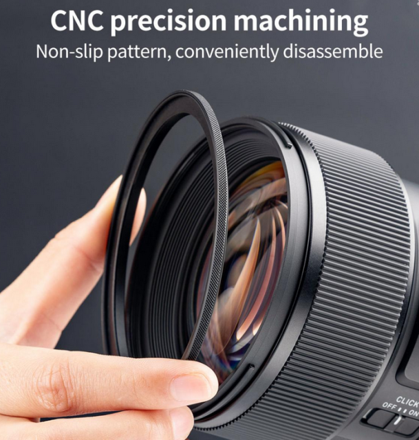 Magnetický filtračný adaptér K&F 58-77 mm umožňuje používať väčšie filtre s objektívmi s menším závitom. Tento adaptér je vyrobený z hliníkovej zliatiny leteckej kvality, je pevný a odolný voči nárazom. Jeho eloxovaný čierny povrch znižuje odrazy počas snímania. Adaptér poskytuje stabilné nasávanie na rýchlu inštaláciu a demontáž a je kompatibilný so všetkými magnetickými filtrami objektívov K&F Concept.